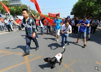 (網(wǎng)友拍攝的搞笑圖片,將日本人和狗綁在一起)
